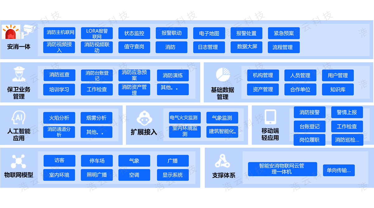 重點部位僅配備如手提式消防滅火器等被應對手段,缺乏主動感知、無人值守的主動消防火災探測手段;另則,消防通道是火災逃生的生命通道,日常容易被員工、清潔衛(wèi)生員雜物堵塞,日常難以一一清查,缺乏實時發(fā)現(xiàn)堵塞、監(jiān)督處置的手段。